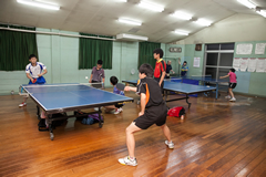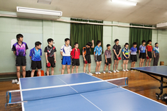 ラケット、上靴(卓球・体育館シューズ)、タオル、運動のできる服装。