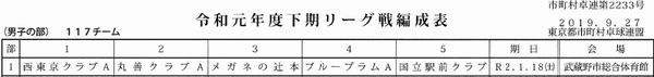 東京都市町村リーグ1部に出場しました! 2020年02月04日(火) 1月18日(土)、市町村リーグ1部に出場させていただきました! 一般の選手に試合をしていただき、結果は第二位でした、 ありがとうございました! メンバー【二井原・福井・藤本・藤本】 丸善クラブ 1-3 国立駅前クラブさん 丸善クラブ 3-2 西東京クラブさん 丸善クラブ 参考試合 ブループラムさん 丸善クラブ 参考試合 メガネの辻本さん